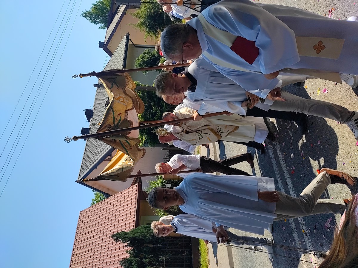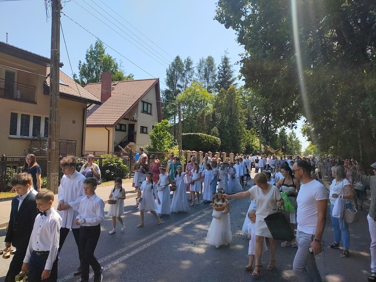 Po uroczystej Mszy Świętej o 11:00 którą odprawił Ksiądz Michał Turkowski tradycyjnie ruszyła procesja do czterech ołtarzy, która jest wyrazem i świadectwem wiary. Poniżej galeria z uroczystości Bożego Ciała.