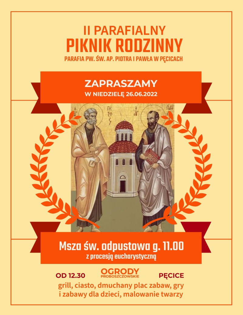 26.06 po mszy o godzinie 11:00 odbędzie się II Parafialny Piknik Rodzinny, na który serdecznie zapraszamy!